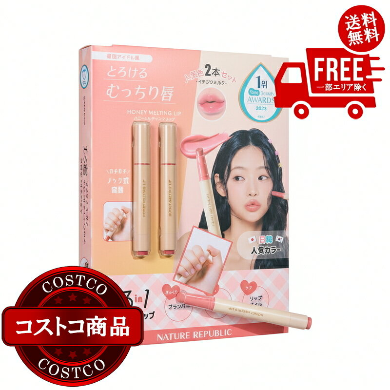 3in1 効果を叶えるルージュな発色 唇の上でパッキリきれいに発色、重ねるたびに違うたのしみ!痛くないプランパーのボリューム感 とろける質感と密着力でぷっくりボリューム感のある唇を演出リップオイルのツヤ・うるおい ハチミツとバラエキス8種の天然由来オイル配合でツヤ&うるおいONカチカチ♪ノック式容器 とろけるテクスチャーとうるおい効果を逃さない特別容器を採用商品タイプ化粧品高発色なのにとろける“むっちり唇”3in1?ルージュ/高発色??むっちりプランパー/立体感??リップオイル/高保湿?いいトコ取りの欲張りリップで韓国アイドル風のあどけないぷるぷるリップに演出!?【使用方法】容器の後ろのボタンをノックし、リップを出します。唇になじむようにゆっくりと塗ってください。(ボタンをノックするごとに0.1mm程出てきます)※一度出すとリップは中に戻らないため、ご使用分だけを少しずつノックしてご使用ください。?【使用上の注意】●唇やお肌に異常が生じていないかよく注意して使用してください●赤み・はれ・かゆみ・刺激・色抜け(白斑等)や黒ずみ等の異常があらわれた場合は、使用を中止し皮フ科専門医等へご相談ください●本来の使用方法以外の用途には使用しないでください●唇やお肌に異常がある場合には、お使いにならないでください●使用後は必ずキャップを閉めてください●乳幼児・小児の手の届かないところに保管してください●高温または低温の場所及び直射日光を避けて保管してください。?【全成分】リンゴ酸ジイソステアリル、ダイマージリノール酸ダイマージリノレイルビス(ベヘニル/イソステアリル/フィトステリル)、ビスジグリセリルポリアシルアジペート−2、トリイソステアリン酸ポリグリセリル−2、水添ポリイソブテン、パラフィン、マイクロクリスタリンワックス、ウルシ果皮ロウ、ハチミツエキス、センチフォリアバラ花エキス、マンゴー果実エキス、カニナバラ果実エキス、アーモンド油、アルガニアスピノサ核油、シア脂、オリーブ果実油、アンズ核油、ツバキ種子油、ホホバ種子油、月見草油、BG、トリ(カプリル酸/カプリン酸)グリセリル、1,2−ヘキサンジオール、イソステアリン酸ソルビタン、酢酸トコフェロール、フェノキシエタノール、酸化鉄、酸化チタン、赤202、青1、香料
