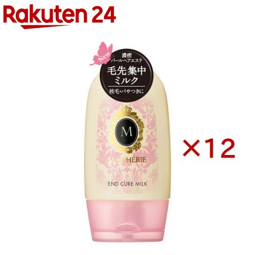 お店TOP>化粧品>ヘアケア>スタイリング>スタイリング ミルク>マシェリ 毛先ケアミルク (100g×12セット)商品区分:化粧品【マシェリ 毛先ケアミルクの商品詳細】●毛先集中ケアミルク。●髪にツヤを与えると同時に、1本1本を補修して扱いやすい状態に導く。●濃密パールハニージュレDX※配合。●静電気・ドライヤー等の熱から髪を守ります。●洗い流さないタイプ。※つや・補修・保湿成分(パールコンキオリン※※・ハチミツ・ヒドロキシエチルウレア・ヒアルロン酸Na)。※※加水分解コンキオリン。●うっとり甘くさわやかなフローラルフルーティの香り【販売名】マシェリ 毛先ケアミルク【使用方法】・半乾きまたは乾いた髪に適量を手のひらにのばし、傷んだ毛先中心に指を通しながらなじませます。【成分】水、エタノール、水添ポリイソブテン、PG、ジメチコン、コハク酸ジエチルヘキシル、ベヘニルアルコール、ミネラルオイル、PEG-60水添ヒマシ油、アミノプロピルジメチコン、ヒドロキシエチルウレア、乳酸、ハチミツ、ヒアルロン酸Na、加水分解コンキオリン、セタノール、べへネス-20、カルボマー、水酸化K、EDTA-2Na、乳酸アンモニウム、BG、トコフェロール、フェノキシエタノール、香料 (M111386-202)【注意事項】・ご使用後は、キャップをきちんと閉めてください。・樹脂製品(メガネ等)へ付着した場合は、拭きとってください。・床に付着すると滑りやすくなりますのでご注意ください。・乳幼児の手の届かないところにおいてください。・お肌に傷やはれもの・湿しん・色抜け(白斑等)や黒ずみなどの異常が生じていないかよく注意して使用してください。お肌に合わないときは、使用を中止し、皮ふ科医などにご相談ください。【原産国】ベトナム【ブランド】マシェリ(MACHERIE)【発売元、製造元、輸入元又は販売元】ファイントゥデイ※説明文は単品の内容です。リニューアルに伴い、パッケージ・内容等予告なく変更する場合がございます。予めご了承ください。・単品JAN:4550516493934ファイントゥデイ108-0075 東京都港区港南2-16-30120-202-166広告文責:楽天グループ株式会社電話:050-5577-5043[ヘアスタイリング剤/ブランド:マシェリ(MACHERIE)/]