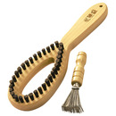 カシミヤ用ブラシは厳選された豚毛だけを使用し、細く繊細な毛先でやさしくホコリを払います。