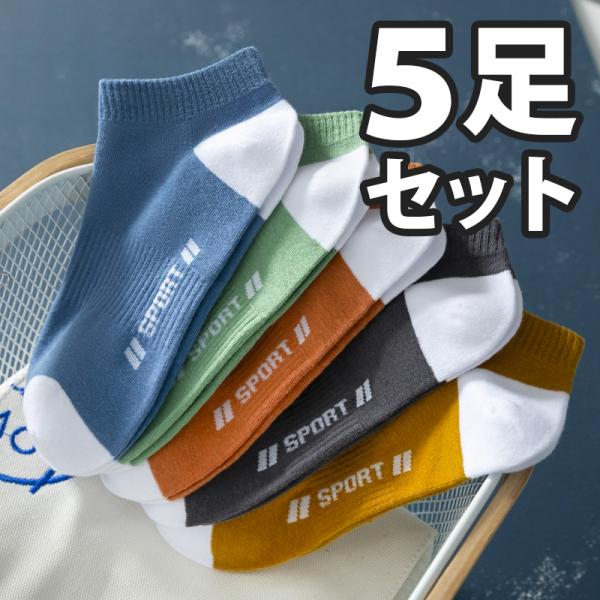 メンズスポーツ靴下スニーカーソックス5足セット肌触り柔らかなコットンを使用したショートソックス各タイプの5色アソートセットとなります吸湿性、通気性に優れ、春夏はもちろん、一年を通して使えます。