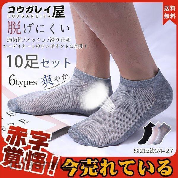 【キーワード】10足セット靴下ソックス通気性メッシュくつしたスポーツビジネス爽やか夏用シンプル鰍闔~めブラック薄手脱げにくい履きやすい