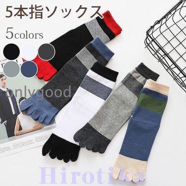 五本指ソックスメンズハイソックスつま先ソックスビジネスソックス5足セットMIXカラー靴下ソックス厚手ストライプ