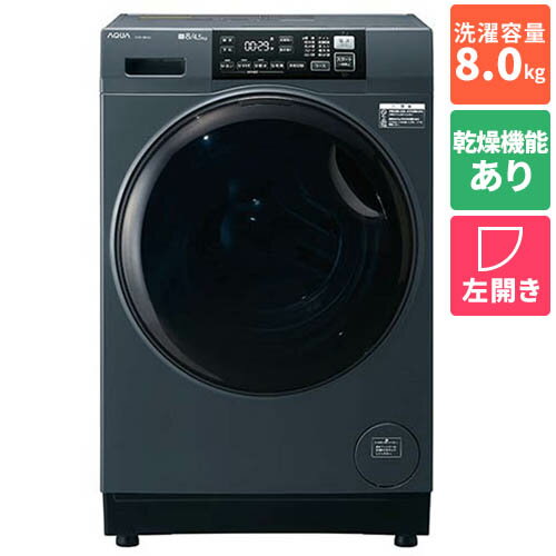 ご注文確認後、当店より「*設置環境入力のお願い*」メールを送信いたします。メール記載のURLより、設置環境、配送希望日などの設問に必ずご回答ください。※設置環境により追加料金が発生する場合がございます。※離島や山間部等、一部地域につきましては、追加の配送料金が掛かる場合や、設置・工事などできない地域がございます。エリア外の場合はキャンセルとさせていただきます。 家電リサイクルご希望の場合は、メールでご案内する「設置環境情報入力ページ」よりお申し込みください。※リサイクル回収対象は家電リサイクル法に定められた4品目(テレビ・冷蔵庫・洗濯機(衣類乾燥機)・エアコン)に限ります。※家電リサイクル料金、リサイクル回収費用が追加で発生します。 リサイクル料金と収集運搬料金について ※発送手配は、メールでご案内する「設置環境情報入力ページ」の設問ご回答後となりますので、必ずご回答ください。※代金引換でのご注文は承れません。 長期保証をご希望のお客様は下記の表より「商品+長期保証」のページへ移動してご注文ください。 AQWD8ALWタイプ:ドラム式扉開閉方向:左開き設置可能防水パン:奥行内寸540mm以上-風呂水ポンプ:-容量 洗濯・脱水:8kg 乾燥:4.5kg標準使用水量 洗濯:69L 洗濯〜乾燥:84L消費電力 洗濯:240W 乾燥:830W運転音 洗濯時:36dB 脱水時:42dB 乾燥時:36dB運転時間 洗濯:29分 洗濯〜乾燥:175分洗浄方式:オールラウンド浸透洗浄乾燥方式:ヒーター乾燥方式便利機能: チャイルドロック寸法:幅 595×高さ 943×奥行 616mm質量:約80kg付属品:まっ直ぐドラム