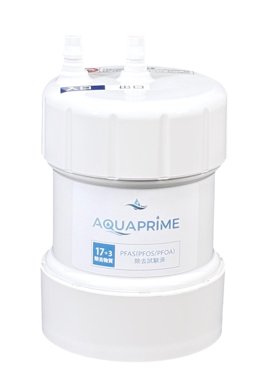 商品の特徴 AQUAPRME(アクアプライム) 浄水カートリッジ アンダーシンクタイプ JP-1135 製品仕様 浄水カートリッジ【アンダーシンクタイプ】 有機フッ素化合物 PFAS除去 人体への有害性が懸念される有機フッ素化合物(PFAS)の一種であるPFOS・PFOAの除去について、 一般社団法人浄水器協会で定められた規格基準(JWPAS)に基づく試験を第三者機関にて実施し、 PFOS、PFOAを除去できることを確認済みです。 PFASを含む20物質を除去する高性能 12か月使える長寿命 ワンタッチジョイント方式で簡単交換 互換品(交換可能なカートリッジ) クリンスイ:HUC17021、UZC2000BL、BUC12001(廃盤品)、UZC2000(廃盤品)、UNC1000(廃盤品) TOTO:TH634-1、TH634-2、TH634RR メイスイ:Ge・1Z クリナップ:ZSRBZ040L09AC LIXIL:UZC2000SW タカラスタンダード:UZC2000T(廃盤品) ハーマン:DP1001Z 材料の種類 ABS樹脂 ろ材の種類 中空糸膜、活性炭、不織布 ろ過流量 3.5L/分 使用可能な最小動水圧 0.07MPa ろ材の交換時期の目安 1年(1日の使用量20L) 重量(満水時) 0.7kg(1.3kg) サイズ 直径109mm × 高さ176mm 17+3種類除去 1 遊離残留塩素 36,000 除去率80% 2 濁り 30,000 除去率80% 3 総トリハロメタン 8,000 除去率80% 4 クロロホルム 8,000 除去率80% 5 ブロモジクロロメタン 14,000 除去率80% 6 ジブロモクロロメタン 15,000 除去率80% 7 ブロモホルム 19,000 除去率80% 8 テトラクロロエチレン 17,000 除去率80% 9 トリクロロエチレン 12,000 除去率80% 10 CAT(農薬) 80,000 除去率80% 11 2-MIB(カビ臭) 36,000 除去率80% 12 溶解性鉛 8,000 除去率80% 13 1,2-DCE 18,000 除去率80% 14 ベンゼン 36,000 除去率80% 15 陰イオン界面活性剤 12,000 除去率80% 16 フェノール類 36,000 除去率80% 17 ジェオスミン(カビ臭) 36,000 除去率80% 18 PFOS/PFOA 36,000 除去率80% 19 鉄 ― 除去率80% 20 アルミニウム ― 除去率80%