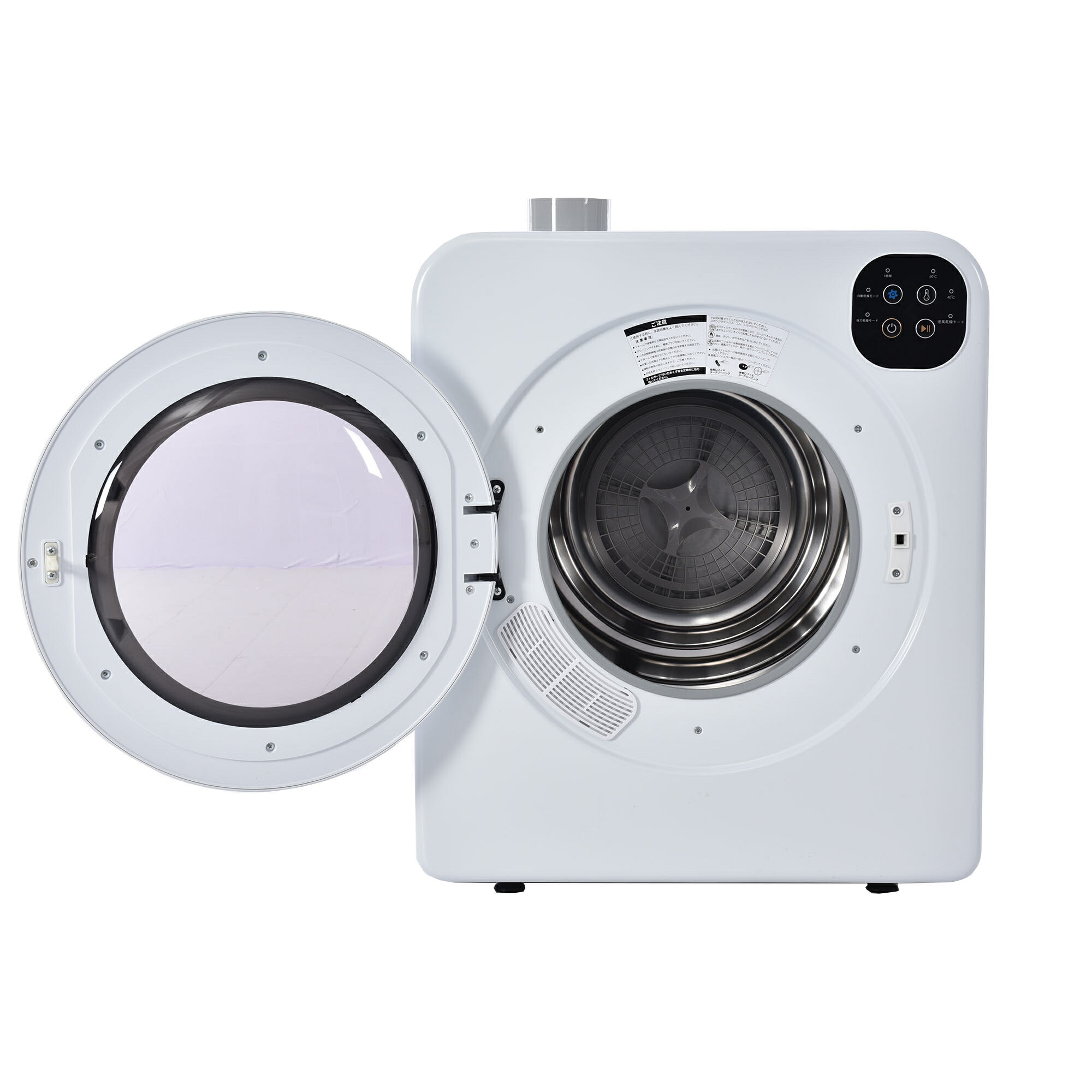 Product Features 【ベランダの解放】 短時間で衣類を乾かし、干す・取り込む手間を大幅に削減。梅雨や多湿な季節でも天候に左右されず、自宅で手軽に衣類を乾燥できます。ベランダに出る必要がなく、毎日の家事をもっと快適に。 【コンパクト&6kg乾燥】 急ぎの乾燥でもコインランドリー不要。最大6kgの大容量で、一人暮らしからご家族分まで対応可能です。 【タッチパネル操作】 直感的で分かりやすいタッチパネルを採用。どなたでも簡単に操作でき、ご高齢の方にも使いやすい設計です。 【タイマー機能】 タイマーボタンを押すごとに20分ずつ乾燥時間を追加可能。各モードの最大乾燥時間は200分です。自動乾燥モードではタイマー設定はできません。 【お手入れフィルター】 フィルターは月1回のお手入れを推奨。年1回の交換で清潔を保ち、乾燥効率を維持しながら衣類の傷みを防ぎます。 Descriptions 【商品詳細】 サイズ:約 高さ70cm×奥行49cm(本体)+10.5cm(排気口)×幅59cm 電源コード長さ:約180cm 材質:ステンレス 重量:約26kg 乾燥容量:約6kg 消費電力:1300W ドラム温度:約30〜65℃ ドラム回転数:約53回/分 カラー:ホワイト 完成品 【商品説明】 温度センサーにより約60〜65℃で自動停止。 毎日使っても安心の低コスト設計。 使いやすいタッチパネル操作。 熱風乾燥で生乾き臭を抑え、「モラクセラ菌」の繁殖を抑制。 PSE認証取得済。 ※サイズに若干の誤差が生じる場合があります。 ※画面設定により、実際の色味と異なる場合があります。