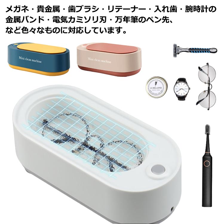 メガネ・貴金属・歯ブラシ・リテーナー・入れ歯・腕時計の金属バンド・電気カミソリ刃・万年筆のペン先、など色々なものに対応しています。45kHzの超音波高周波振動により、隙間、溝など、盲区のほこりや汚れを取り除き、物を傷つけることはありません。底部の滑り止め設計は、機械を安定させ、作業プロセス中の騒音を低減する役割を果たします。チャンバーの大きさは15.2*7*4cmであり、大容量400mlは、ほとんどのアイテムのクリーニングニーズを満たすことができます。USB電源なので、USBコンセントからの給電、、パソコンなど等のUSBポートに差し込むだけ簡単にご利用できます。ワンタッチでOFF/ON。使用簡単!コンパクトなデザインで収納や持ち運びに便利です。 サイズFサイズについての説明21*9.5*7.5cm 洗浄槽:15.2*7*4cm 重量:251g素材プラスチック色ピンク ホワイト ブルー備考 ●サイズ詳細等の測り方はスタッフ間で統一、徹底はしておりますが、実寸は商品によって若干の誤差(1cm〜3cm )がある場合がございますので、予めご了承ください。●製造ロットにより、細部形状の違いや、同色でも色味に多少の誤差が生じます。●パッケージは改良のため予告なく仕様を変更する場合があります。▼商品の色は、撮影時の光や、お客様のモニターの色具合などにより、実際の商品と異なる場合がございます。あらかじめ、ご了承ください。▼生地の特性上、やや匂いが強く感じられるものもございます。数日のご使用や陰干しなどで気になる匂いはほとんど感じられなくなります。▼同じ商品でも生産時期により形やサイズ、カラーに多少の誤差が生じる場合もございます。▼メガネ・貴金属・歯ブラシ・リテーナー・入れ歯・腕時計の金属バンド・電気カミソリ刃・万年筆のペン先、など色々なものに対応しています。45kHzの超音波高周波振動により、隙間、溝など、盲区のほこりや汚れを取り除き、物を傷つけることはありません。底部の滑り止め設計は、機械を安定させ、作業プロセス中の騒音を低減する役割を果たします。チャンバーの大きさは15.2*7*4cmであり、大容量400mlは、ほとんどのアイテムのクリーニングニーズを満たすことができます。USB電源なので、USBコンセントからの給電、、パソコンなど等のUSBポートに差し込むだけ簡単にご利用できます。ワンタッチでOFF/ON。使用簡単!コンパクトなデザインで収納や持ち運びに便利です。 サイズFサイズについての説明21*9.5*7.5cm 洗浄槽:15.2*7*4cm 重量:251g素材プラスチック色ピンク ホワイト ブルー備考 ●サイズ詳細等の測り方はスタッフ間で統一、徹底はしておりますが、実寸は商品によって若干の誤差(1cm〜3cm )がある場合がございますので、予めご了承ください。●製造ロットにより、細部形状の違いや、同色でも色味に多少の誤差が生じます。●パッケージは改良のため予告なく仕様を変更する場合があります。▼商品の色は、撮影時の光や、お客様のモニターの色具合などにより、実際の商品と異なる場合がございます。あらかじめ、ご了承ください。▼生地の特性上、やや匂いが強く感じられるものもございます。数日のご使用や陰干しなどで気になる匂いはほとんど感じられなくなります。▼同じ商品でも生産時期により形やサイズ、カラーに多少の誤差が生じる場合もございます。▼