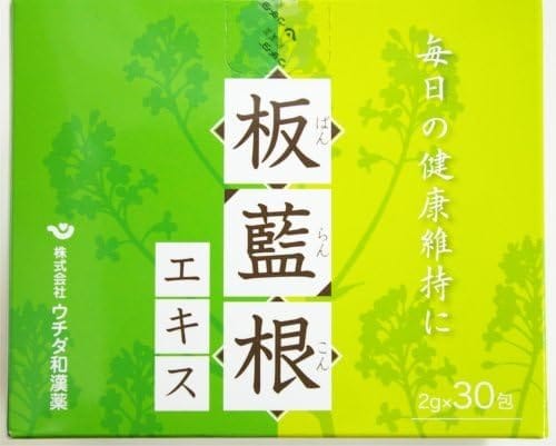 2g×30包 板藍根は古くから、中国で冬の寒い時期に多くつかわれる植物です。 日ごろの健康維持にお役立出ください。 原材料 板藍根、馬鈴しょ澱粉、微粒二酸化ケイ素 お召し上がり方 1日2?3包を目安に水またはお湯と一緒にお召し上がりください。 栄養成分表示 熱量370kcal,たんぱく質7.3g,脂質0.4g,炭水化物84.4g,ナトリウム43.7mg 使用上の注意 直射日光を避け、湿気の少ない涼しい場所に保管してください 販売者:株式会社 ウチダ和漢薬
