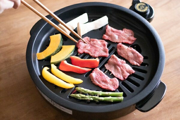 ■商品紹介旨味は逃がさず余分な脂は落としてヘルシーに●ハイパワーで一気に焼くので素材の旨味をギュッと閉じ込めて、美味しくヘルシー!余分な脂は下の水受け皿に落ちるので煙が出にくい仕組みです。●煙を気にせず焼肉!!●ここがポイント:煙の原因である脂を水受け皿で冷却し脂の燃焼を抑えて、煙を出にくくします。●プレート着脱式でお手入れもラクラク●1200Wハイパワー加熱●お肉以外にも使えます●使いやすい!コンパクトサイズ[仕様]●電源:AC100V●消費電力:1200W●温度調整:サーモスタット可変式●1年間保証書付き■サイズ・容量●サイズ:(約)幅35.5×奥行37×高さ10.5cm、プレート直径:(約)31cm●重さ:(約)1.9kg■規格■生産地:日本■素材・成分:●素材/本体:鉄(粉体塗装)、プレート:アルミダイキャスト(フッ素樹脂加工)、水受け皿:ステンレス、ハンドル・脚:フェノール樹脂●日本製■注意事項■こちらの商品はメーカー直送品となります。■メーカーに在庫が無い場合はキャンセルさせていただくことがございます。■お客様ご都合による返品・交換は出来ませんのでご注意ください■沖縄、離島については別途送料が掛かります。