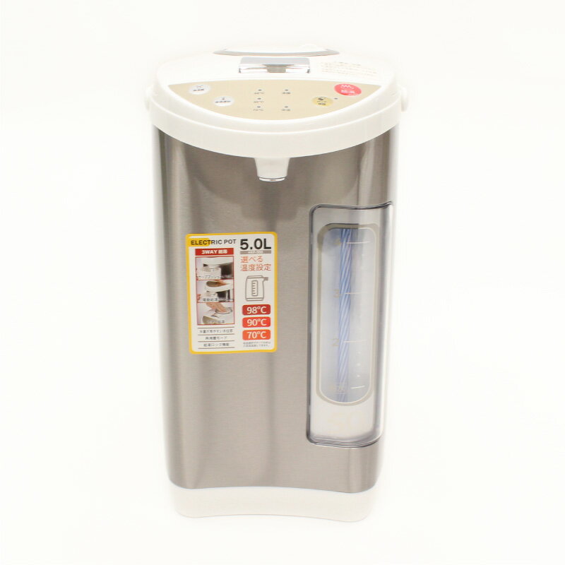 類似商品はこちら象印 電気ケトル 1.5L CK-VA15 象7,990円象印 電気ケトル 0.8L CK-DB08 象6,590円ポット 象印 1L AG-KE10 | ポット3,990円押すだけポット 象印 3L AB-RC30 |6,590円押すだけポット 象印 2.2L AB-RC225,990円押すだけポット 象印 みエ〜る 2.2L AB6,990円水筒 マグボトル コーヒーボトル 200ml 1,790円コーヒーメーカー 象印 ミルつき コーヒーカッ9,890円コーヒーメーカー 象印 コーヒーカップ5杯用 13,990円新着商品はこちら2026/1/21レック 液晶テレビ用 激落ち ウェットシート 330円2026/1/21天馬 収納ボックス フィッツケース クローゼッ5,490円2026/1/21天馬 収納ボックス フィッツケース マルチ キ5,790円再販商品はこちら2026/1/22折りたたみ ガーデンテーブル チェア セット 11,000円2026/1/22風呂水Reクリーン 20錠入 日本製 小久保工299円2026/1/22セキスイ ランドリースタンド W | 部屋干し5,090円2026/01/22 更新【商品について】たっぷりのお湯が使えて便利な "大容量5L" & "985Wスピード沸とう" タイプです。給水のタイミングを知らせてくれる 「給水お知らせ」機能がります。最大16時間まで設定可能!「6段階タイマー」6・8・10・12・14・16時間。 "給湯" 機能だけを有効にする「給湯限定モード」ゆっくり少量ずつ注げる「ゆっくりカフェドリップ給湯」≪用途に合わせて選べる≫ 「4段階保温設定」98℃・90℃・80℃・70℃≪気になる蒸気を約90%(仮)カットする≫ 「蒸気セーブモード(選択式)」 お湯の残量が見やすい 「ワイドウインドウ」&「赤玉水量計」大きな文字と分かりやすい操作パネルです。毎日のお手入れが簡単「広口内容器」です。 ■規格本体サイズ:(約)幅23×奥行31.5×高さ34cm 電源:交流100V 50/60Hz 消費電力:985W 消費電力量:年間 555kWh/年 1日あたり 1.52kWh/日 コードの長さ:1.0m 電動ポンプ(電動機)消費電力:約2.4W重量(コードを含む):(約)3.4kg 定格容量:5.0L■材質フタ・カタ:ポリプロピレン 胴:印刷鋼板 ロックボタン:ポリアセタール 内容器:ステンレス+フッ素加工 操作シート ポリエステルシート 揚水管シート:ポリエステルシート ハンドル:ポリプロピレン ■生産国中国■ご使用にあたっての注意事項・ご使用上の注意を必ずお読みいただき、正しくお使いください。 ・閲覧環境によっては色の出方が異なる場合がございます。・底がぬれた状態で製品を逆さまにして乾燥させないでください。(内部に水が入り、故障・さびの原因) ・次のものは、使用しないでください。【シンナー、ベンジン、漂白剤など(変色、割れ、劣化、腐食の原因)】【みがき粉、ナイロンたわし、金属製のもの、メラミンスポンジ、スポンジのナイロン面、研磨剤入り洗剤など(表面が傷つく原因)】 【洗剤(ふきこぼれてやけどの恐れ、においが残る原因)】・容器ネット以外の部分にブラシは使用しないでください。(表面を傷つける原因) ・化学ぞうきんを使用する場合は、強くふいたり長時間触れさせたりしないでください。(表面が傷ついたり、化学変化を起こす原因) ・食器洗い乾燥機、食器乾燥機を使用しないでください。(樹脂の変形の原因) ・長期間使用しないときは、十分乾燥させて、においがつかないようにし、ポリ袋などに入れて保管してください。・本体、上ぶた、電源コードの丸洗いは絶対にしないでください。