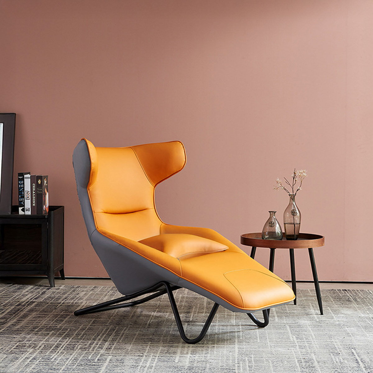 VeroMan一人掛け椅子チェアリクライニング寝れる椅子お洒落座り心地快適シンプルオレンジお家用