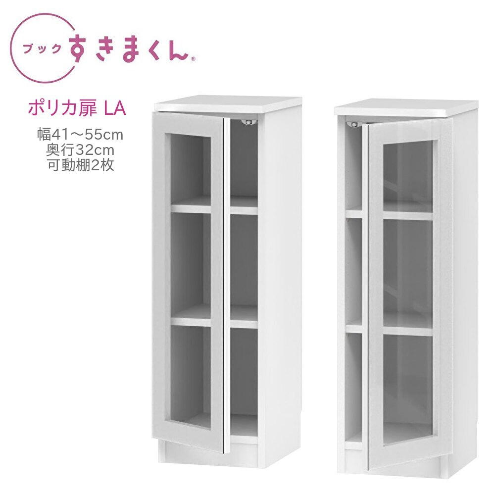 ブックすきまくんロータイプポリカ扉LA幅41〜55cm奥行32cm高さ96cm書棚書棚キャビネット壁面収納システム家具幅オーダー国産完成品