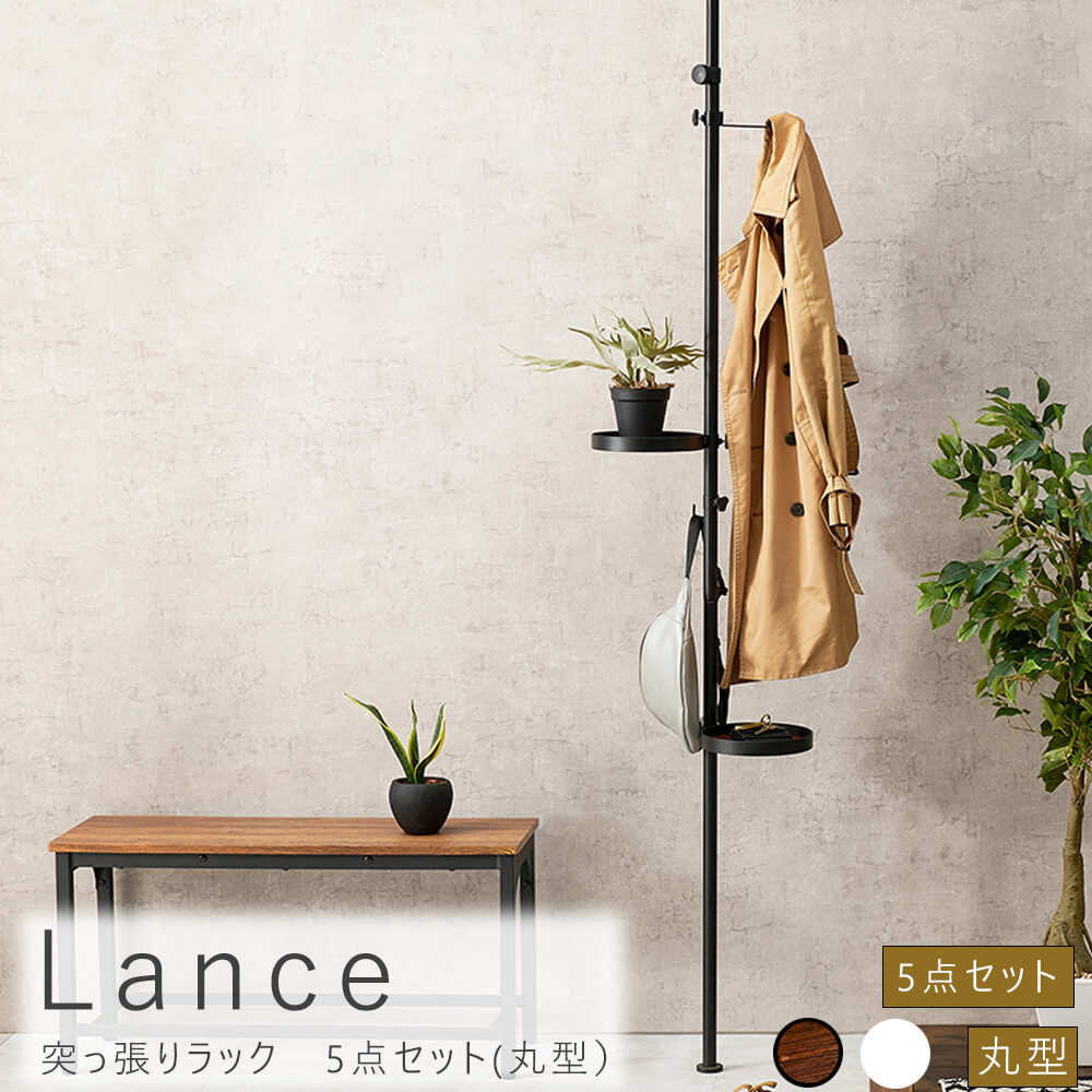 【楽天ブラックフライデーポイント5倍】突っ張りラック5点セット(丸型)つっぱりラックスリム玄関キッチン天井壁面収納突っ張りラック壁面ポールラックおしゃれ木目調小物収納玄関収納ディスプレイ突っ張り収納つっぱり棚収納