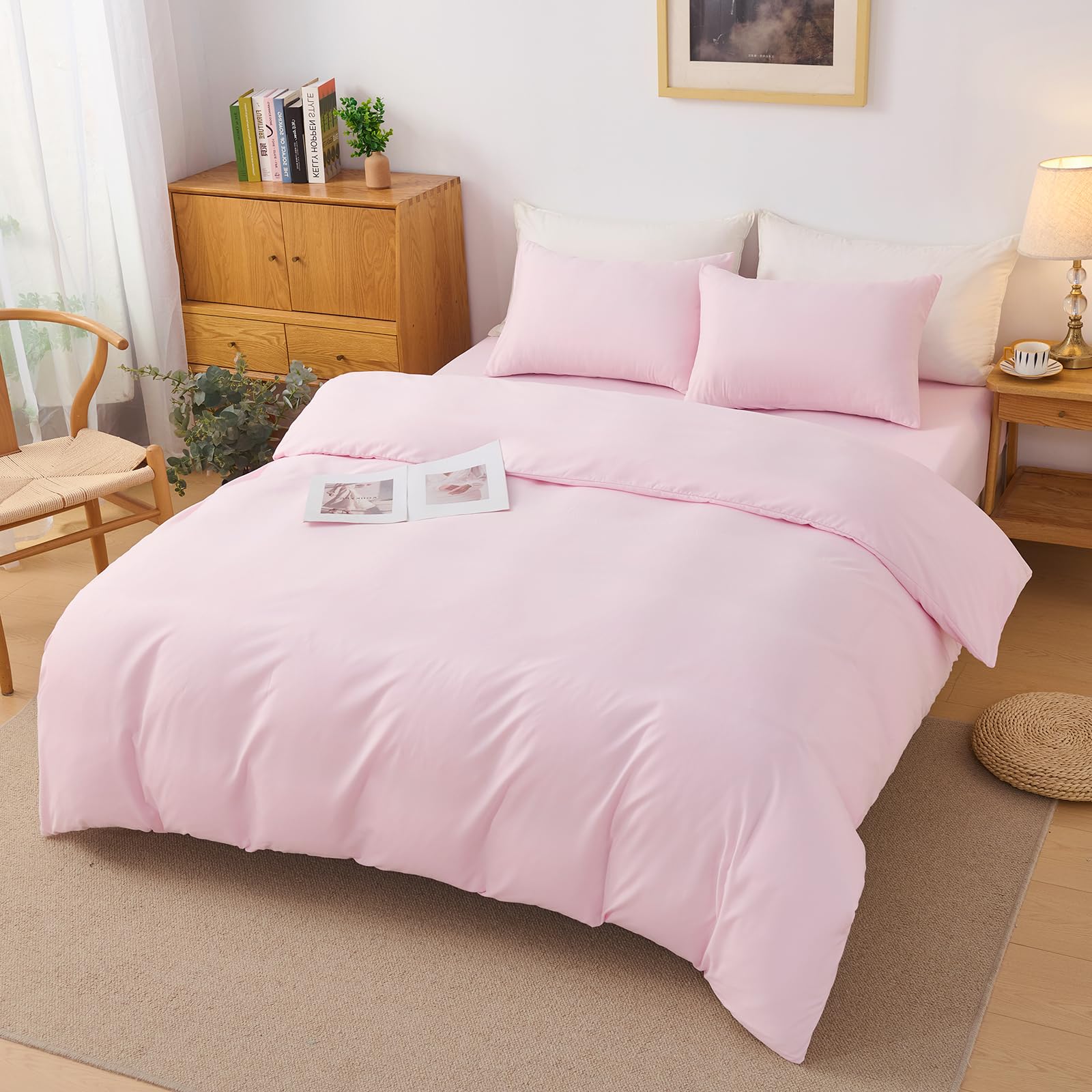 【送料無料】BUKAROOM 布団カバー 3点セット シングル 寝具カバーセット… 色:ピンク、サイズ:ダブル