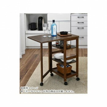 天板を折りたたんで、本体をコンパクトに収納できます。3枚の棚板を収納物に合わせて3段階で高さ調節ができる自由度の高い設計になっています。必要な時だけ天板をさっと広げて、広々作業スペースを確保できるので便利です。キッチン・ランドリー・書斎など、様々なシーンで活用できます。キャスター付きで移動しやすいです。※沖縄・北海道・離島の場合、別途送料がかかります。サイズW65×D45×H70cm(高さ以外はキャスター含まず)、天板折り畳み時:W32×D45×H70cm個装サイズ:70×47×13cm重量9.3kg個装重量:10300g素材・材質本体:天然木(ラバーウッド/ラッカー塗装)天板・棚板:中質繊維板(オーク突板)底板:プリント紙化粧合板キャスター:樹脂仕様耐荷重:天板5kg、底板5kg、棚板1枚3.5kg、全体17kg組立式生産国ベトナムfk094igrjs