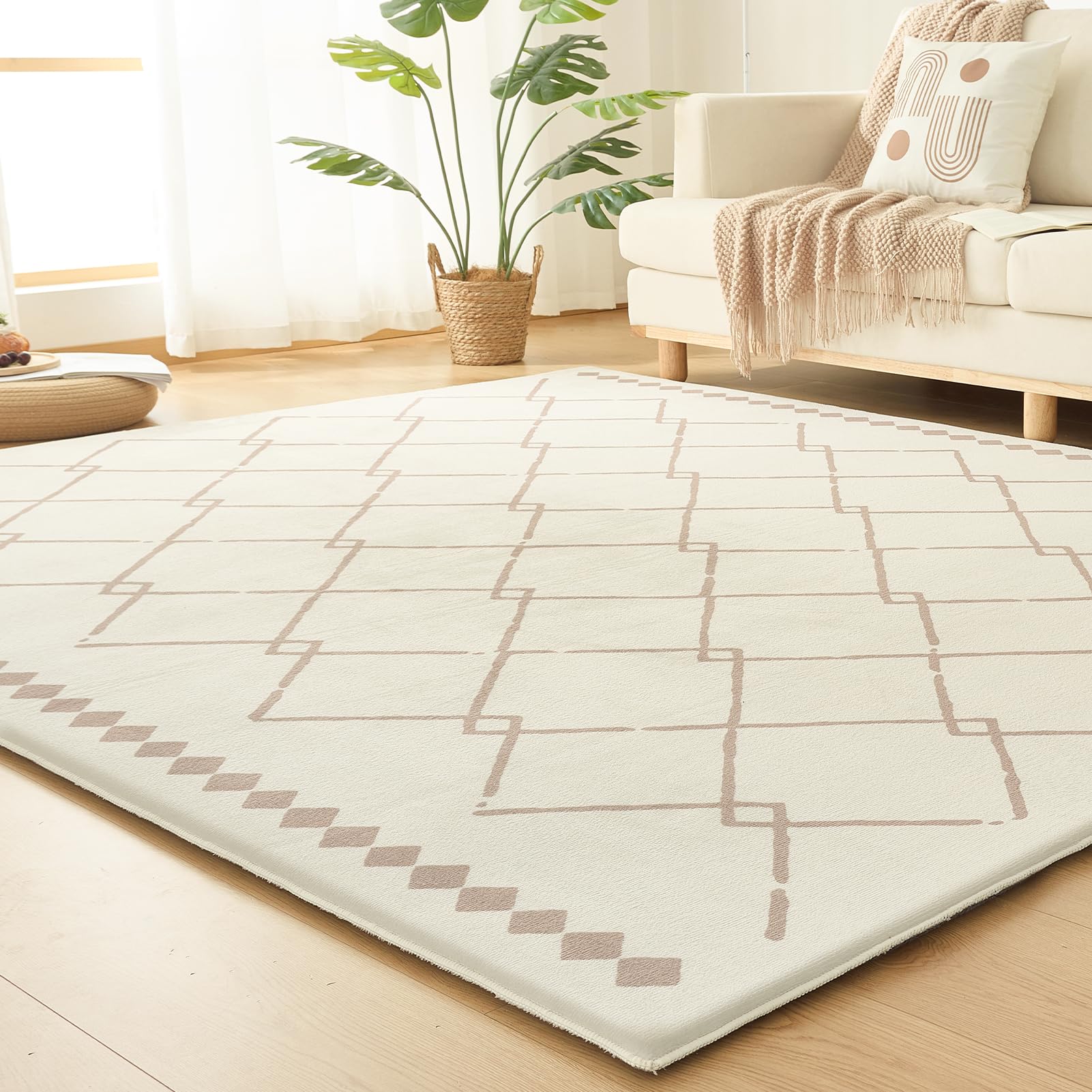VK Living カーペット ラグ 極厚25mm ラグマット【新開発ミルクラフィネ生地】130×190cm ふわふわ肌ざわり 約1.5畳 抗菌防臭 北欧 厚手 防音 滑り止め 低ホルム 床暖房ホットカーペット対応 こたつ敷きマット 絨毯 幾何学模様 ベー