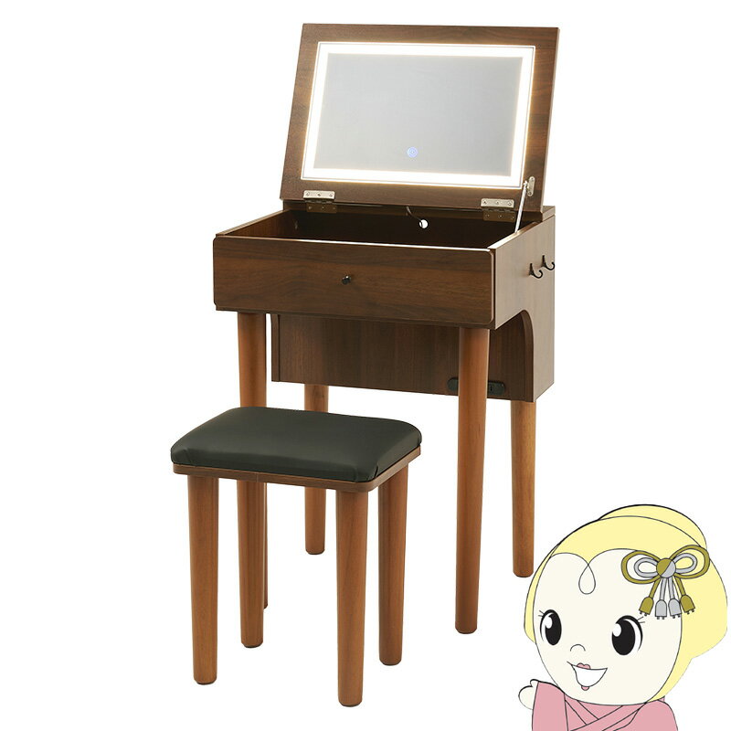 ■ 萩原 ■LEDの女優ライト付きドレッサー。天板を閉じれば簡易デスクに早変わり。一緒に使えるスツールがセット◆ 主な特長 ◆●女優ライトでメイク上手に●外出先の照明環境に合わせて、暖色・自然光・寒色の3色の切り替え●ワンタッチスイッチで操作が楽々●スイッチを長押しすることで、明るさを無段階で調節可能●高輝度で長持ちなLED●天板を閉じればデスクになる2WAY●高さ違いの収納スペース●前面のフラップ扉を手前に倒すと開くとミニテーブルに●コンセントとサイドフック付きでコテなどを収納●ミラーを使う人に合わせて角度調節可能●長時間座っても疲れにくいスツールもセット●難しい工程なしで簡単組み立て●水や汚れに強いメラニン樹脂加工仕上げ●クッションシールでミラーを閉める際の衝撃を緩和◆ 主な仕様 ◆●製品仕様生産地:中国製サイズ:ドレッサー:(約)幅50(フック含:52)×奥行47〜60/44.5×高さ94〜100/68cm、スツール:<ダークブラウン>(約)幅33×奥行27×高さ39.5cm<ホワイト>(約)幅30×奥行30×高さ39.5cm素材:主材:メラミン樹脂化粧繊維板、脚部:天然木補足説明:組立式、LEDライト付、2口コンセント付※写真はメーカー様のカタログ等から掲載させていただいております。実物の商品と写真の色が若干写真写り等により異なる場合がありますのでご注意くださいませ。万が一の際でございましても返品はお受けいたしかねます。お客様組立て品につきましては、組み立て後に不良の連絡をされても対応ができません。組み立て前にパーツに不良・傷等がないか、必ずご確認下さいますようよろしくお願い申し上げます。簡易商品仕様ブランド名:萩原|HAGiHARAメーカー型番:MD-6755DBR原産国/製造国:-代表カラー:ブラウン組立状態:要組立品カラー:ダークブラウンセットの椅子の有無:有