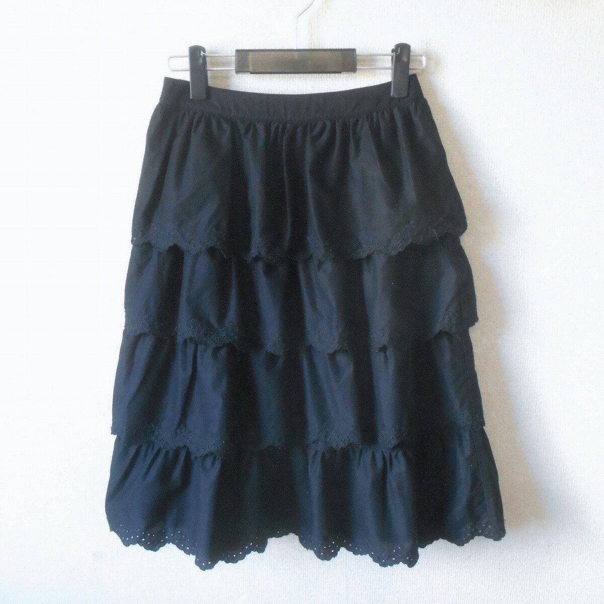 商品情報商品説明ピンクハウスのスカートになります。お色は黒色で、段付きのティアードスカートです。4段になった裾は波型にカットされていて、カットワーク刺繍が施された、とっても素敵なデザインです。ご不明な点はご遠慮なくお問い合わせください。コンディション【状態】USED品です。とくに目立ったシミ、汚れ、キズは見当たりません。USED品としては、きれいな良い状態です。素材【素材】綿100%サイズ【サイズ】表記なし【実寸】・ウエスト=66 ・着丈=65 *実寸は平置きです。多少の誤差があるかもしれませんがご容赦ください。ご注意モニター発色の具合により色合いが異なる場合がございます。その他*このお品は他モールでの販売もしております。売れた場合は売り切れとさせていただいておりますが、万が一入れ違いの場合はご了承ください。【中古】ピンクハウス PINK HOUSE スカート ティアードスカート カットワーク 刺繍 段付き レディース 黒 ピンクハウス PINK HOUSE ピンクハウスのスカートになります。お色は黒色で、段付きのティアードスカートです。4段になった裾は波型にカットされていて、カットワーク刺繍が施された、とっても素敵なデザインです。ご不明な点はご遠慮なくお問い合わせください。 5