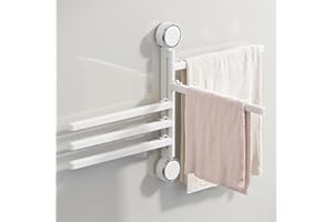 Swioled ふきん掛け 吸盤式 ふきんかけ 5本収納 180度回転可能 タオル掛け ABS製 錆びにくい タオルかけ 穴あけ不要 壁傷つけず キッチン/洗面所/浴室用 多機能 タオルハンガー 30cm 折りたたみ式 壁掛け ホワイト
