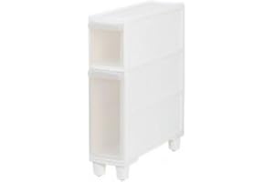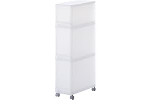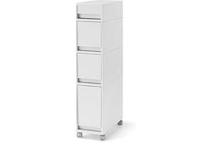 SUINIAO 収納キャビネット 14cm超狭ギャップ キッチンラック キッチンストッカー 洗面所用キャビネット 引き出し 防水 落下防止 リビング 洗濯機 冷蔵庫横 トイレ収納 ランドリー収納 隙間収納 ホワイト
