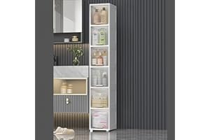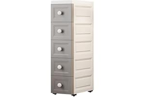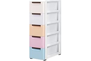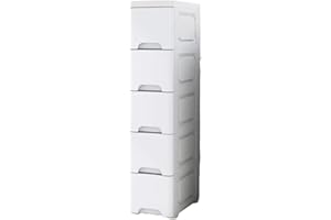 pisipe 隙間収納 キッチン 収納ボックス 収納ケース 引き出し プラスチック製 防水 防塵 プーリー付き 移動が容易 組み立てが簡単 調味料収納 バスルーム 狭いエッジ おもちゃの収納 小物収納 5段 (ホワイト,25*32*82)