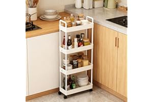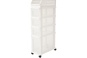 Aissiora 収納ラック キャスター付き 隙間収納カート 4段 キッチンワゴン すき間ワゴン スリム 小物 スパイス 調味料収納ラック ワゴン 食品棚 コーナーラック オープンシェルフ 洗面所/冷蔵庫横/台所/トイレ収納(白,4段)