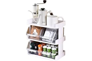 コーヒー収納ラック スティックコーヒー 収納 コーヒーカップ収納棚 コー 2/3/4段 プラスチックコーヒーカプセルホルダー 収納 引き出し 省スペース洒落に収納 家庭、喫茶店、ラウンジなどに適す/寝室 洗面所 事務用 学校