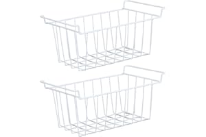 チェスト冷凍庫オーガナイザービン、2個の積み重ね可能な金属ワイヤー収納バスケット冷蔵庫冷凍庫オーガナイザーラック、キッチンパントリー整理バスケット収納ラックキャビネット、クローゼット用 (長さ42.5cm×幅24.5cm)