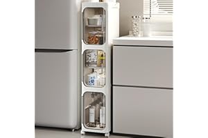 Guyyelt キッチン 収納 すき間収納 引出し スーパースリム キッチン収納 キッチン収納ボックス 調味料ラック キッチン収納棚 ローラー付き 簡単組み立て 食品保存 アイテムの保管と整理 リビングルーム、キッチン、バルコニー、寝室、トイレなどに