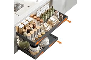 ママ倉 キッチン収納引き出し 幅32-48cm 奥行42cm 高さ7cm 伸縮式 穴開け不要 スライドレール付き 台所用 銃灰