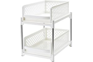 キッチン 収納 調味料 引き出し シンク下収納ラック 2段 キッチン 調味料収納ラック 白 おしゃれ 組立簡単 省スペース 大容量 台所収納 多機能のキッチン収納 安定設計 約幅38×奥行27×高さ38cm トイレ 洗面台収納 調味料や小物入れ キッ