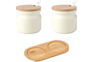 Smay 調味料入れ 北欧 セラミック保存容器 木製カバー 調味料缶 コショウ 砂糖 粉末調味料 調理用品 キッチン 収納 湿気防止 スパイスラック 台所 飲食店 家庭用 収納竹トレイ スプーン付き