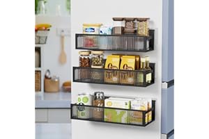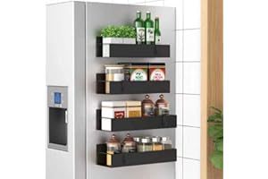 HuggieGems メタル磁気スパイス収納ラックオーガナイザー 4個パック 冷蔵庫とオーブン用 ブラック冷蔵庫オーガナイザー 収納用