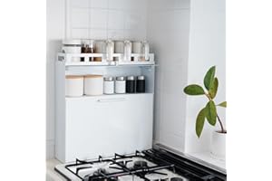隠せる調味料ラック 前が開く フラップ式 キッチンラック おしゃれ 大容量 コンロ横 2段 上部ラック移動可能 調味料収納 スパイス ボトル 省スペース キッチン収納 完成品 (ホワイト)