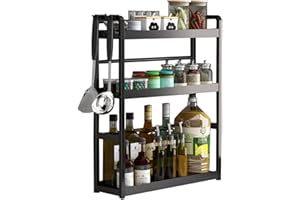突っ張りキッチンラック キッチン つっぱり スパイス 突っ張り棒 棚 調味料棚 スリム 突っ張り棚 突っ張りだな 棚 3段 収納 台所 棚下 スペース活用 便利グッズ 通気性 中空 高い耐荷重性 伸縮性 キッチン 調味料収納ラック キッチン 収納 (