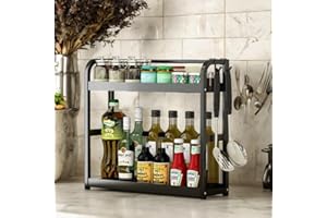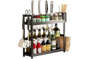 BLZVVZ 調味料ラック 2段式 スパイスラック 大容量 台所収納ラック 調味料棚 キッチン 棚 含めるまな板スタンド 箸立て 水切り,2,30CM