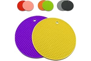 fogman 鍋敷き 耐熱 シリコン 滑らない フライパン 鍋つかみ シンプル 洗える 2色セット (パープル&イエロー)