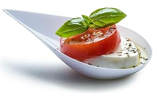 DLux ティアドロップサービングカップ、レシピeブック付きミニ前菜プレート(ホワイトプラスチックパック、100枚セット)小サイズ ケータリングサプライ、ボウル、前菜皿、使い捨て皿、アジアンテイスティングスプーン
