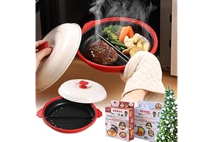 life_mart 電子レンジ調理器具 魚が焼ける 【 仕切り付き 直径20cm 】 電子レンジ 焼き魚 調理器具 1台6役 焼く 煮る 蒸す 茹でる 炒める 炊く 丸型 レシピ付き 丸洗いOK かわいい 電子レンジ専用 (レッド/ねこ, 仕切り付き