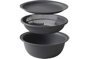 マーナ (marna) ザルボウル 21cm (電子レンジ対応/耐熱/重ねて使える) トレー付き ざる ザル ボウル セット 耐熱ボウル 食洗機対応 蒸し器 ダークグレー K809DGY マーナのきほん