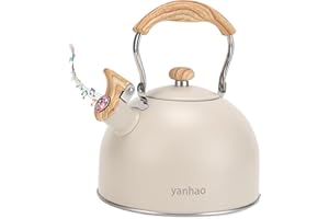 Yanhaoやかん 笛吹きケットル 2.5L 広口 ケトル ステンレス製 木目ハンドル 大容量 IH対応 やかん おしゃれ 調理器具 (オフホワイト)