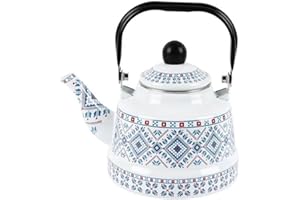 Zxyler ホーローケトル やかん 花柄 大容量 広口 軽量 ガスコンロ・IH対応 急須 かわいい レトロ調 調理器具 家庭用 キッチン用品 (1)
