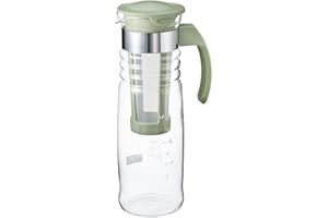 HARIO(ハリオ)かご網付き水出し茶ポット 実用容量1200ml スモーキーグリーン 耐熱ガラス製 熱湯・食洗器OK 冷水筒 日本製 HCC-12-SG