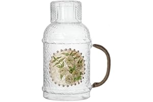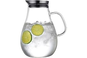 VesVas 耐熱ガラス製大容量ピッチャー 1000ml1200ml1500ml ケトル 冷水ボトル 水出し茶用 茶ポット 直火対応 冷蔵庫保存可能 麦茶冷水筒(1L,ステンレスキャップ)