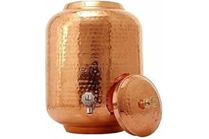 USA Deals 365 伝統的アーユルヴェーダ 純ハンマー銅ウォーターディスペンサー 銅ウォーターグラス2個付き (ポット4リットル/1.05ガロン)