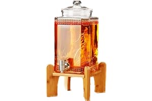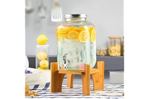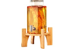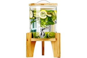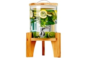 冷水筒 ドリンクサーバー ガラス貯蔵タンク 大容量 ガラスポット 保存瓶ドリンクディスペンサー ス製の蛇口 梅酒 ジュース ビール バレルディスペンサー 貯蔵容器 飲料水バケット密閉タンク (2.5L, 竹ベース)