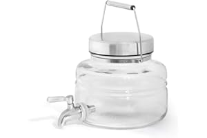 ZJunya 冷水筒 ガラスびん 保存瓶 ステンレス製 蛇口付きピッチャー ガラス ドリンクサーバー ガラス貯蔵タンク ガラスびん 保存瓶 梅酒 果実酒びん 貯蔵ジャー 保存容器 密閉缶 キッチン収納 (5L,ガラス缶)