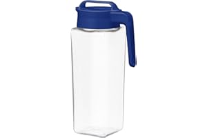 麦茶ポット 2リットル 耐熱 冷水筒 洗いやすい スリム 透明 大容量 割れない おしゃれ 広口設計 冷蔵庫入れ可能 取っ手付き 抗菌 洗いやすい プラスチック 食洗機対応 耐衝撃性 コンパクト 業務用 家庭用 自宅用 (ブルー,2L)