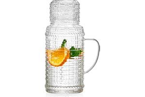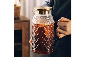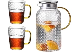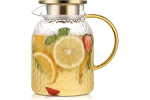 Haiyunhome ピッチャー 冷水筒 耐熱ガラス 麦茶ポット ピッチャー 2リットル 耐熱ガラス 紅茶 ポット ガラスウォーターピッチャー 冷水筒 ヴィンテージスタイル むぎちゃ アイスティー フルーツティー 水 レモネード コーヒー用 大容量