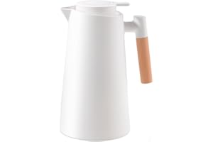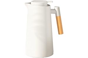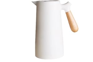 魔法瓶 真空 真空断熱ポット 保温卓上ポット コーヒーポット プラスチック ガラス 木製ハンドル 北欧 ポット 業務用 家庭用 四重壁設計 1000ML 大容量 (ホワイト)