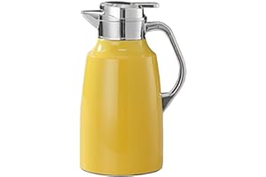 [sivasi] 魔法瓶 ポット 保冷ポット 卓上ポット 携帯ポット 開閉簡単 軽量 省力 漏れ防止 大容量 ガラス製 におい移りしにくい 家庭用 旅行 業務用 イエロー 1.3 liters